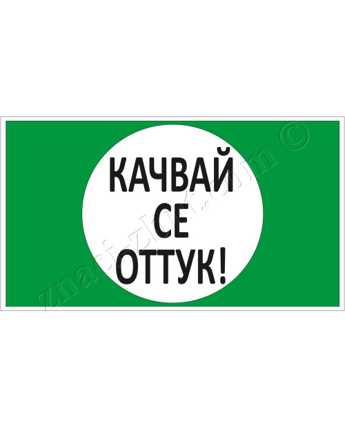 Всички знаци са изработени чрез екосолвентен печат с висока резолюция върху висококачествено самозалепващо PVC фолио. Табелите са със същото изпълнение на повърхността каширано върху основа от 2 или 5 мм разпенено PVC. Самозалепващите стикери са подходящи за монтаж върху гладки и чисти повърхности, а табелите могат да се поставят на определените им места посредством монтажна лента, лепило или с винтове. Знаците и табелите на znaci-zbut.com са с гарантирано качество и в съответствие с българската нормативна уредба и международните стандарти.